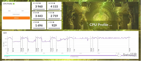 3DMARK的CPU Profile测试中12450H的1线程得分约929,16线程得分约为4115.作为对比,i5-12400的1线程得分约为942,16线程得分约为5916。12450H的性能和桌面级的12400相比基本差不了太多。