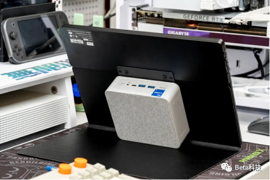 底盖上预留了VESA接口,通过附送的VESA支架可以把主机固定在显示器的背后或者桌子底下。相比而言迷你主机的摆放比起台式机简直方便太多了,不用担心会占用太多的地方。