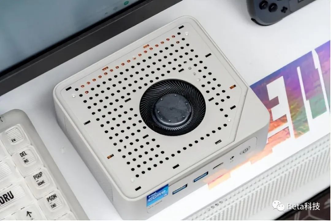 SEi12 12450H迷你主机的三维尺寸是126mm×113mm×42mm,比一台索尼的微单相机大不了多少。SEi12 12450H迷你主机的重量约为465g,差不多和2台iPhone 15 Pro Max(221g)的重量相当,甚至比索尼ZV-E1(483g)相机更轻便。