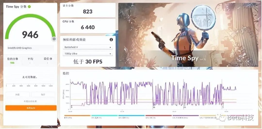 12450H这款处理器内置了核显,有48个执行单元,动态频率可以跑到1.2GHz。DP接口可以支持7680×4320@60Hz的分辨率,HDMI接口支持4096×2304@60Hz的分辨率。核显的Time Spy得分仅有946,差不多是intel ARC A750显卡的7.6%。这种核显运行最新的3A游戏大作肯定会非常吃力,不要指望用它来玩比较新的游戏,用来怀怀旧还是没问题的。