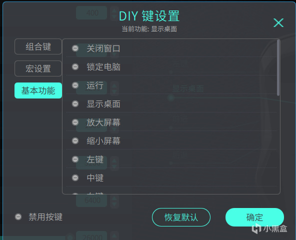 VT9PRO除了一些常規的按鍵外,還設置了一個位於鼠標底部的DIY鍵,放置在電源開關的旁邊,在驅動頁面,除了可以進行預設宏編程的選擇以及一些鍵位映射外,還可以選擇驅動內預設的一些功能,比如顯示桌面,這個功能就很實用了吧,一鍵返回桌面,簡直是摸魚神器好吧。