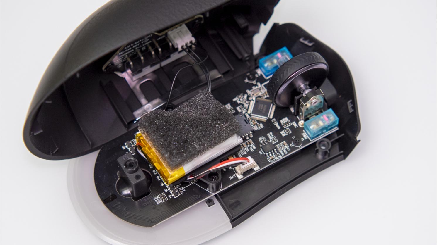 由於有底部RGB燈的原因,電池容量達到了800Mah,這也讓鼠標整體重心靠後。