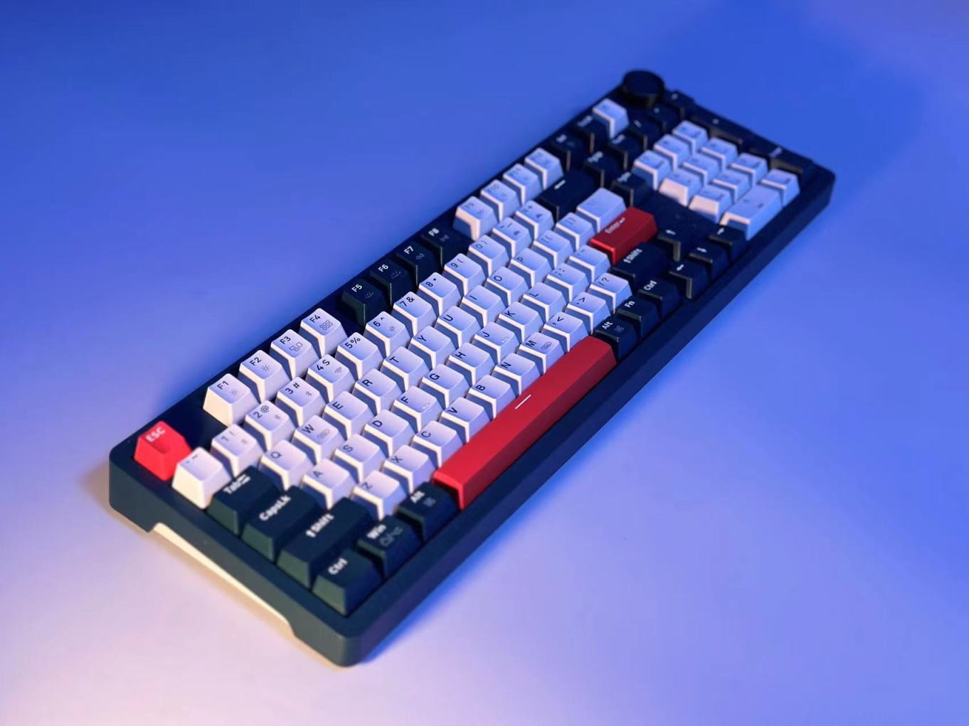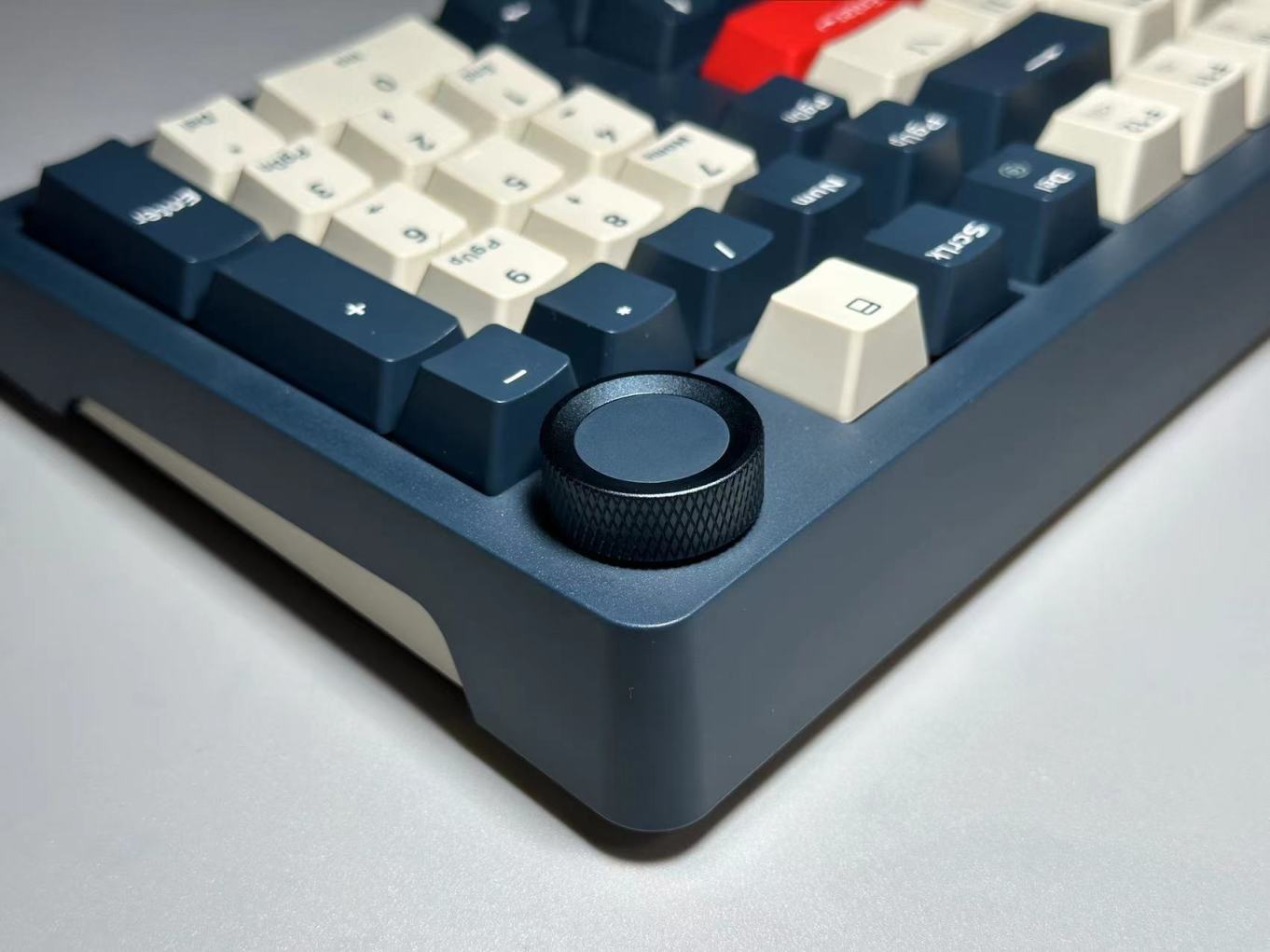 SKN青龙这把键盘采用98%配列加一旋钮中少有的2U0设计,而2U0的设计对于经常使用数字的用户来说相比1u0短小以及位置靠后容易误触外,2U0的设计就不会发生。
