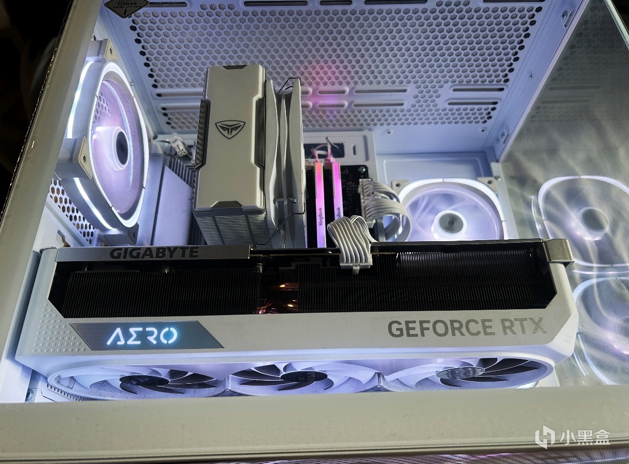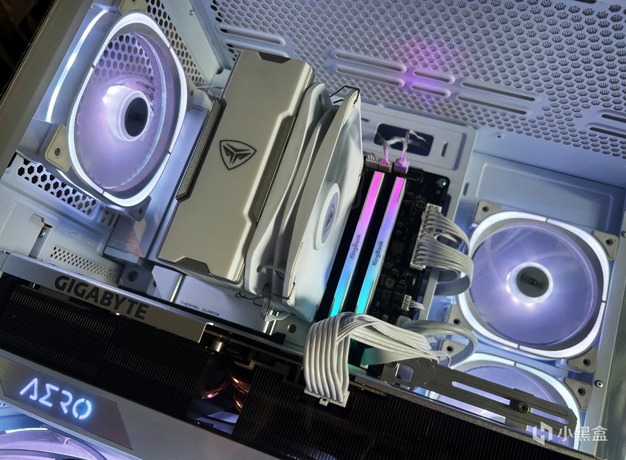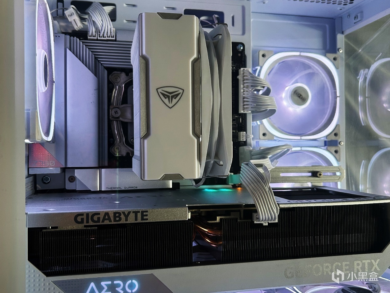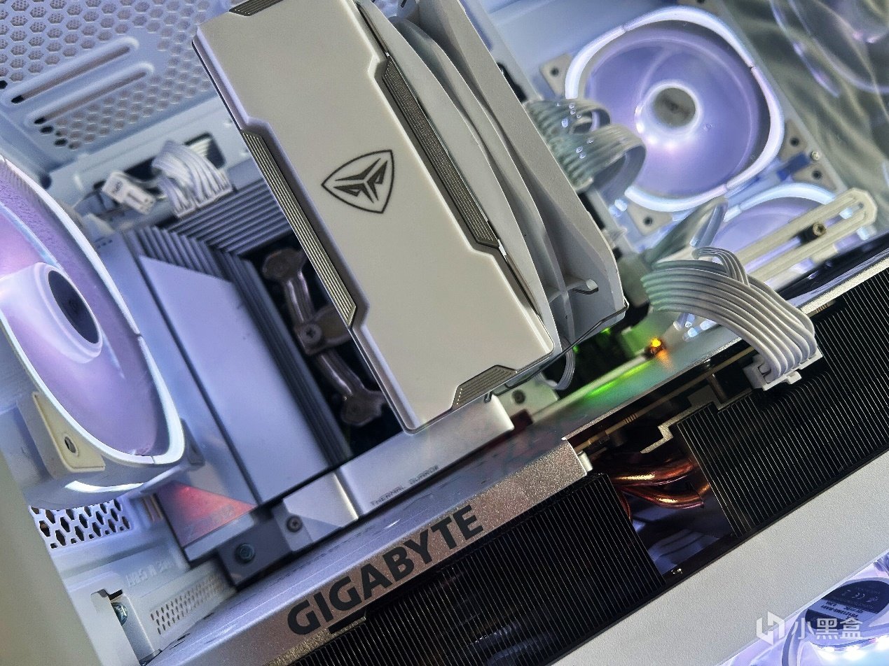360水冷最终没到货,先将就用了超频三的K4风冷散热器;显卡是技嘉RTX4080雪鹰OC;内存是金百达的DDR5 6400刃;主板是技嘉的Z790雪鹰;