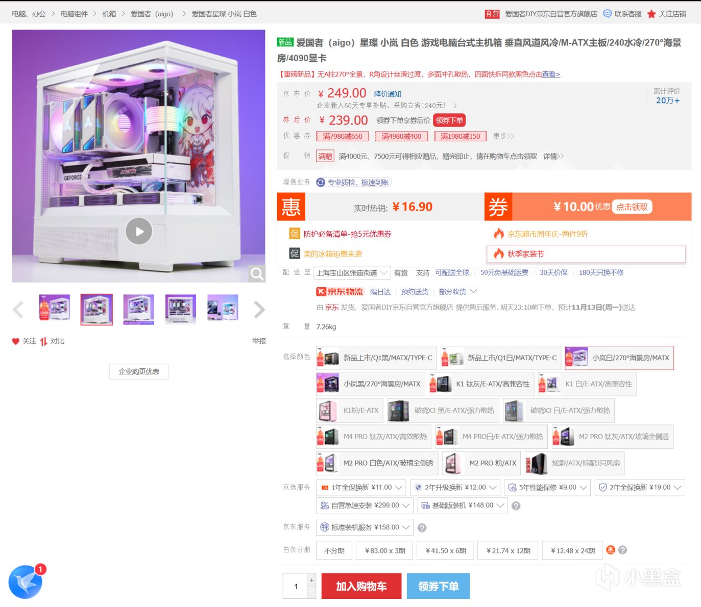 只能再次选择跳过!最后就是爱国者的(aigo)星璨 小岚机箱,售价是四款中最低的只需要239元,也是一款MATX桌面机箱。