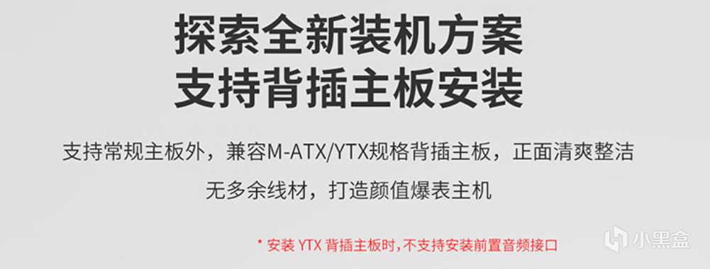 最后让我果断下单的原因,是这款机箱兼容最新的背插主板方案,像老猿的YTX主板、以及其他MATX背插主板都可以兼容。