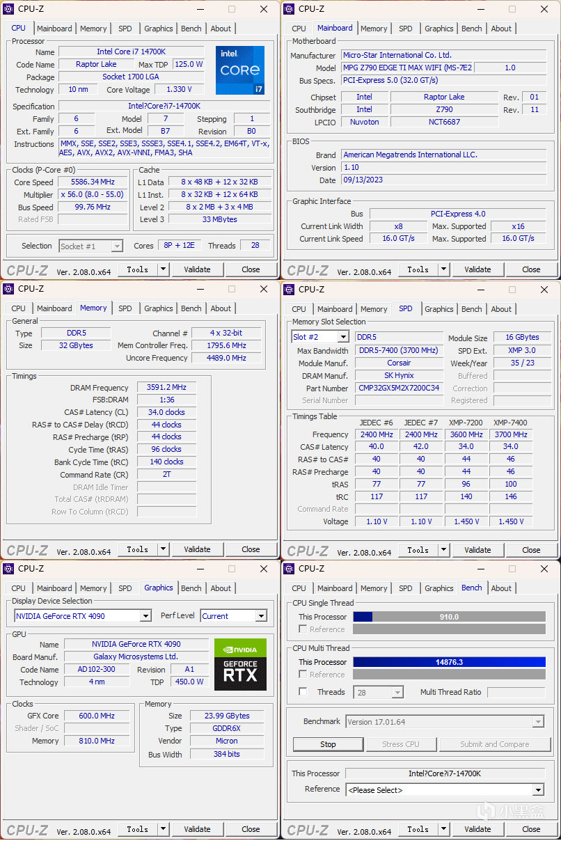 以INTEL最新的14代處理器14700K爲平臺核心,搭配微星MPG Z790 EDGE TI MAX WIFI 主板。