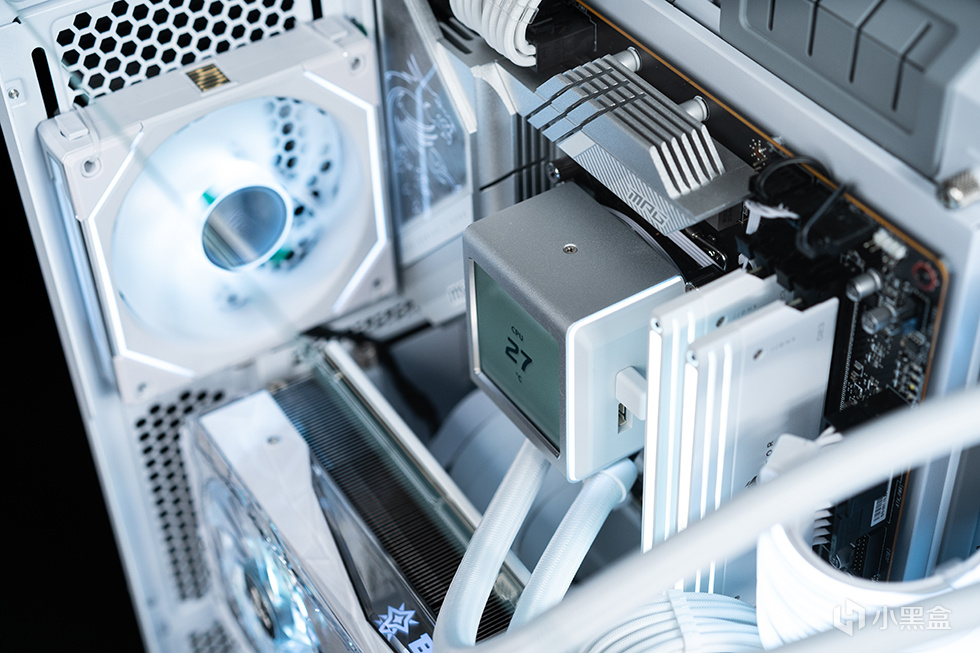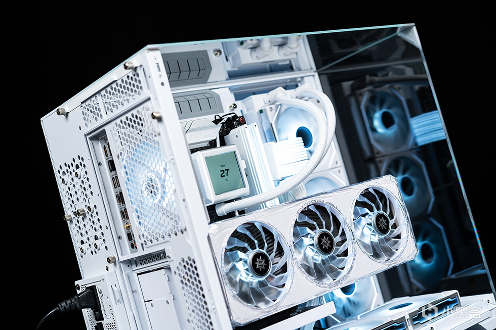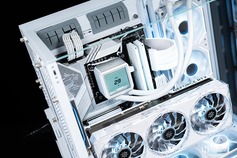 本次的主機依舊以白色爲主題,以INTEL最新的14代處理器14700K爲平臺核心,搭配微星MPG Z790 EDGE TI MAX WIFI 主板和美商海盜船 統治者泰坦 DDR5 7200 內存,新14代平臺選用高頻率內存錯不了。存儲方面使用影馳 HOF EXTREME30 PCIE4.0 1TB,採用優選 3D NAND 顆粒,連續讀取 / 寫入速度最高爲 7000/6500 MB/s。 顯卡方面選了影馳 RTX 4090 星曜 OC,圖形處理性能直接拉滿。供電方面爲了滿足4090的功耗大戶需求,選用海韻的FOCUS GX1000 White ATX3.0。散熱則是聯力最新出品的 極圈2 LCD 360水冷 ,搭配聯力 積木風扇,無論是性能還是顏值上都是無可挑剔。