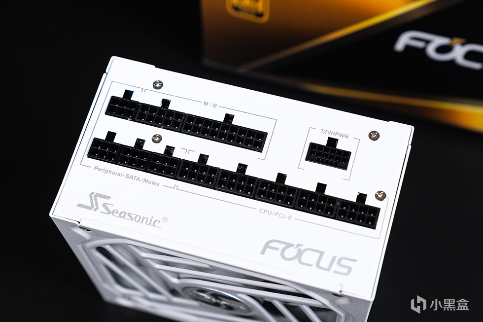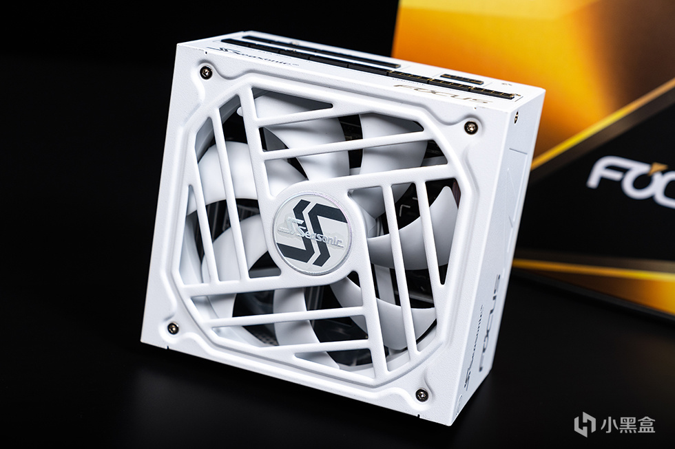 FOCUS GX-1000 (ATX3.0) 電源白色版本,14cm的標準ATX尺寸,短小的身材使其具有更好的兼容性。正面出風口的採用一體壓紋設計,內置的風扇規格由原來的12cm升級到了13.5cm,採用FDB液壓動態軸承,對應出風口面積也較之前2017版有所增加。內部採用全日系耐高溫105°C電解電容與固態電容,與標準電容相比,使用壽命延長2倍ESR 降低 35%,具有更低的發熱量和更高的轉換效率。