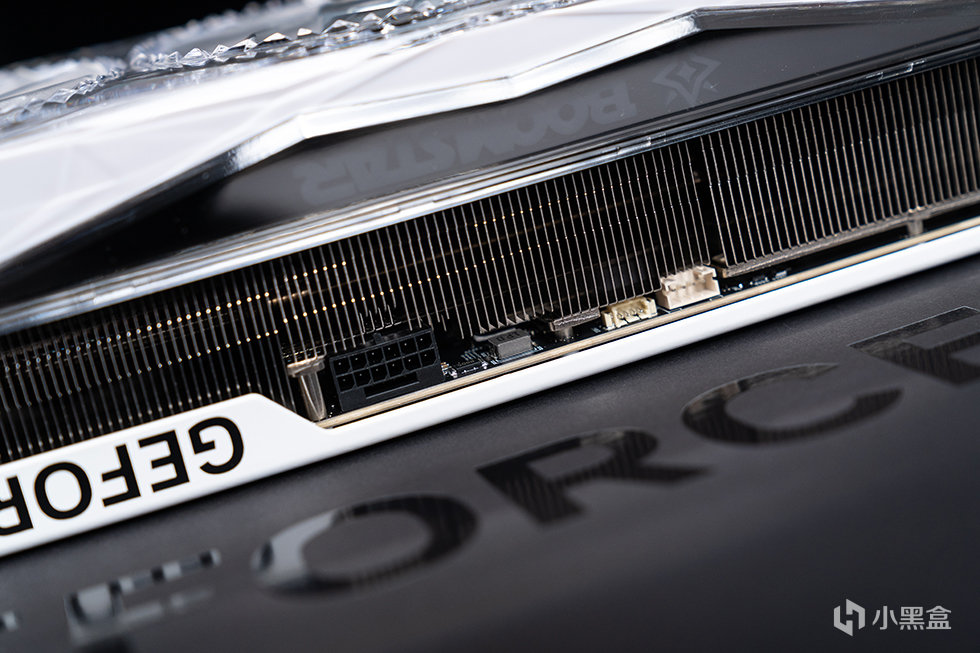 影馳 RTX 4090 星曜 OC顯卡採用了全新 12V HPWR 供電接口,支持 ATX 3.0 / PCIe 5.0 供電規範,單接口供電能力最高爲 600W,此外左側還有5V RGB的燈光同步接口。