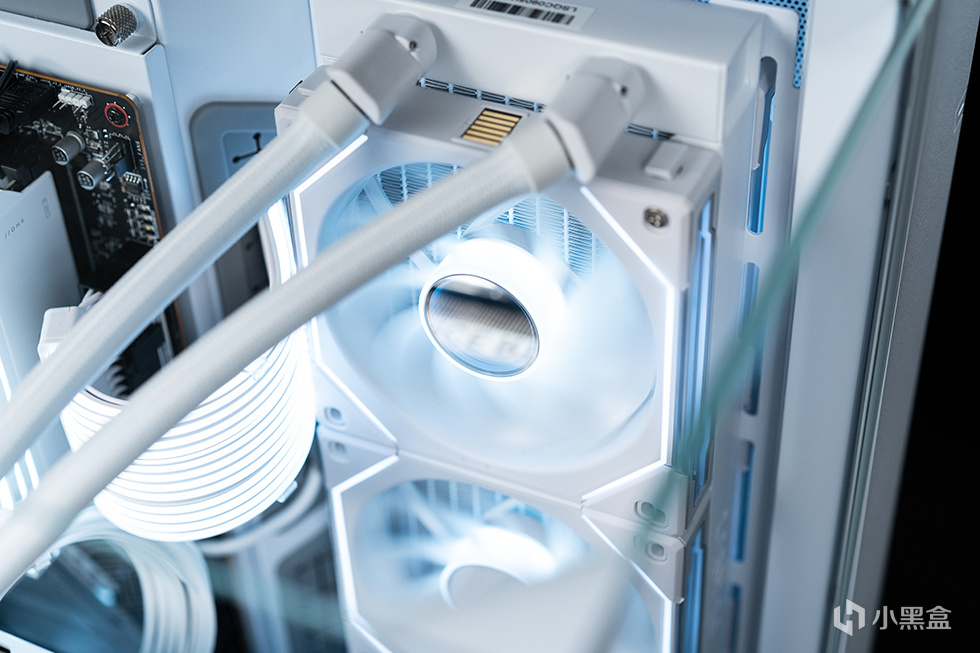 由於頂部爲玻璃面板,取消了冷排安裝位,冷排只能安裝在側面部或者底部,好在水冷管與冷排的接頭爲45°旋轉接頭,可實現360°旋轉,從而讓水冷管的管路走線能更加靈活,進一步加強冷排安裝的兼容性。