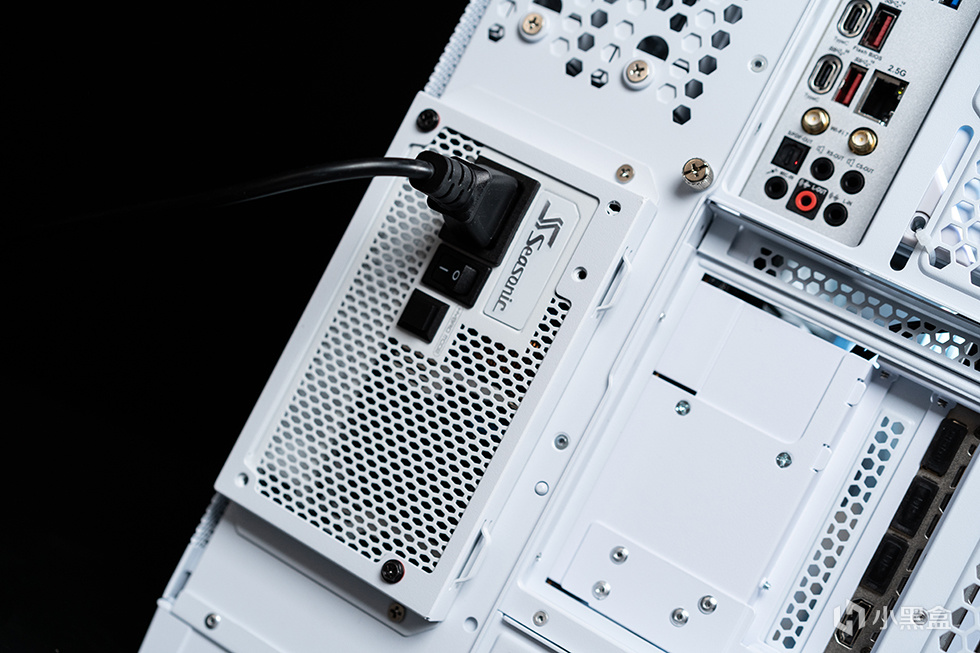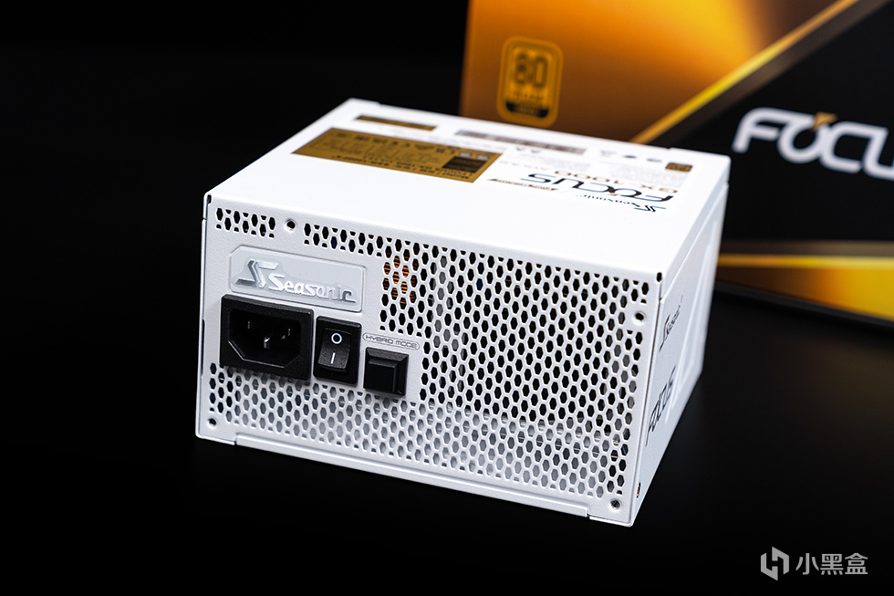 FOCUS GX-1000 (ATX3.0) 電源尾部大面積散熱設計,除了電源插孔外配備了獨立的電源IO開關和0噪音智能溫控開關。