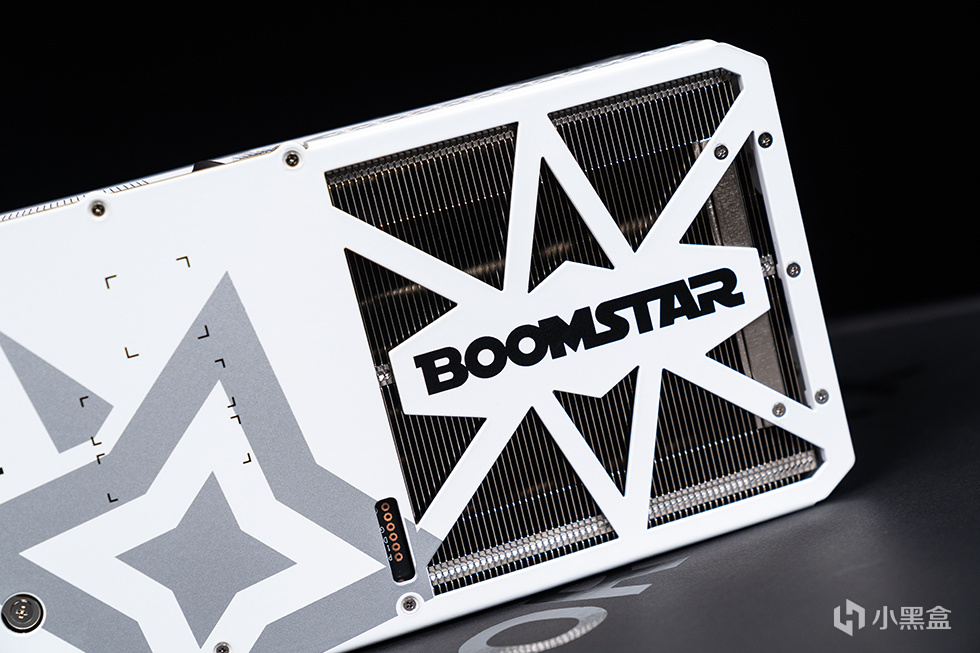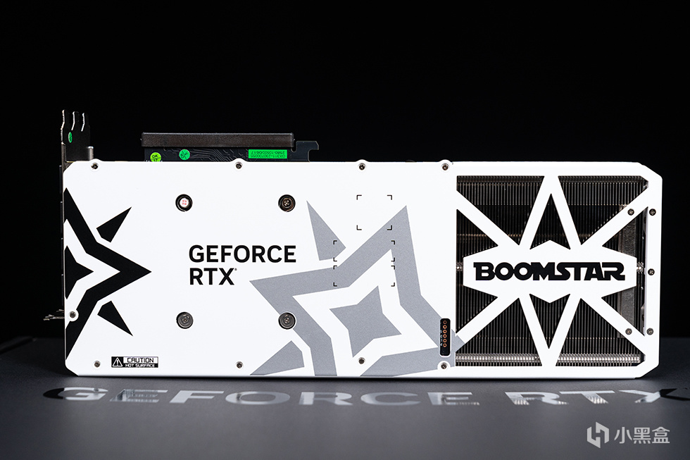 影馳 RTX 4090 星曜 OC顯卡採用全金屬壓鑄白色背板,背板上有星型塗裝,透過尾部位置大面積鏤空。