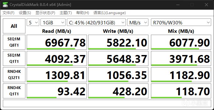 影馳名人堂HOF EXTREME 30 PCle 4.0 1TB採用標準2280規格 ,採用了羣聯 E18 主控,連續讀取 / 寫入速度最高爲 7000/6500 MB/s,隨機讀取 / 寫入速度最高爲 650,000/700,000 IOPS。