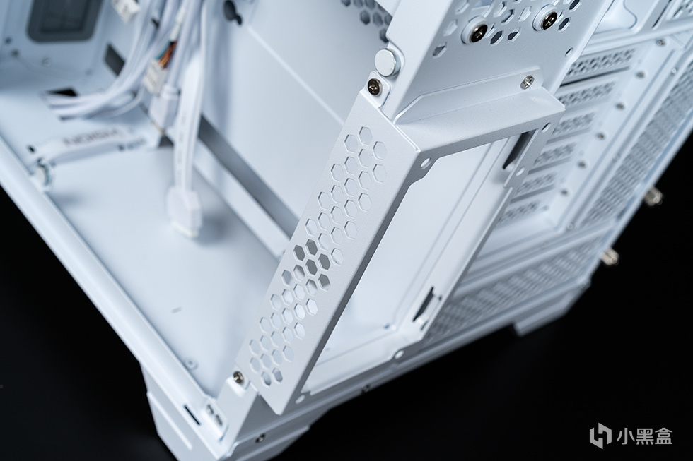 電源安裝支架設計也重新進行設計,讓支架會從機箱背面突出15公釐。這樣可以在第二個腔室中騰出更多空間來安裝額外的線材,並可以在機箱背面容納連接點,以保持背面I/O線材的整齊清潔。