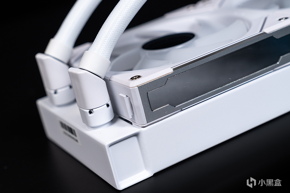 聯力 極圈二代LCD 幻鏡 360 一體水冷的水冷管長度爲365 mm,外面帶有外部有尼龍編織材質包裹,水管與冷排、冷頭連接處均做了加固處理。水冷管與冷排的接頭經過專門設計,採用45°旋轉接頭方案,可實現360°旋轉,從而讓水冷管的管路走線能更加靈活,進一步加強冷排安裝的兼容性。