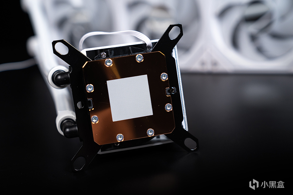 大面積純銅散熱底座,預塗了硅脂,免去用戶自行塗抹硅脂的麻煩,對於硅脂的用量也有精準的控制,確保從CPU到散熱系統都有最有效率的熱傳導。同時還附贈了一罐硅脂,免去二次使用額外購買。