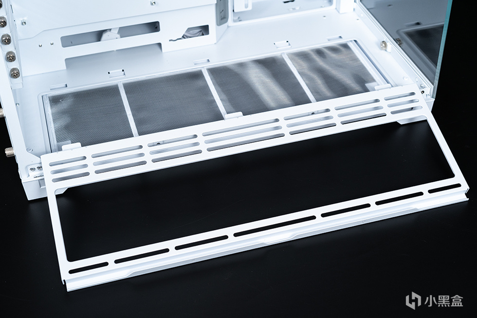 爲了確保機箱有足夠的空氣從底部進入,機箱腳架有27公釐高。底部的風扇支架也採鏤空設計,藉此增加了底部的進氣空間。底部總計有40公釐的可用空間,以確保有適當的氣流流動,並配有磁吸防塵網。