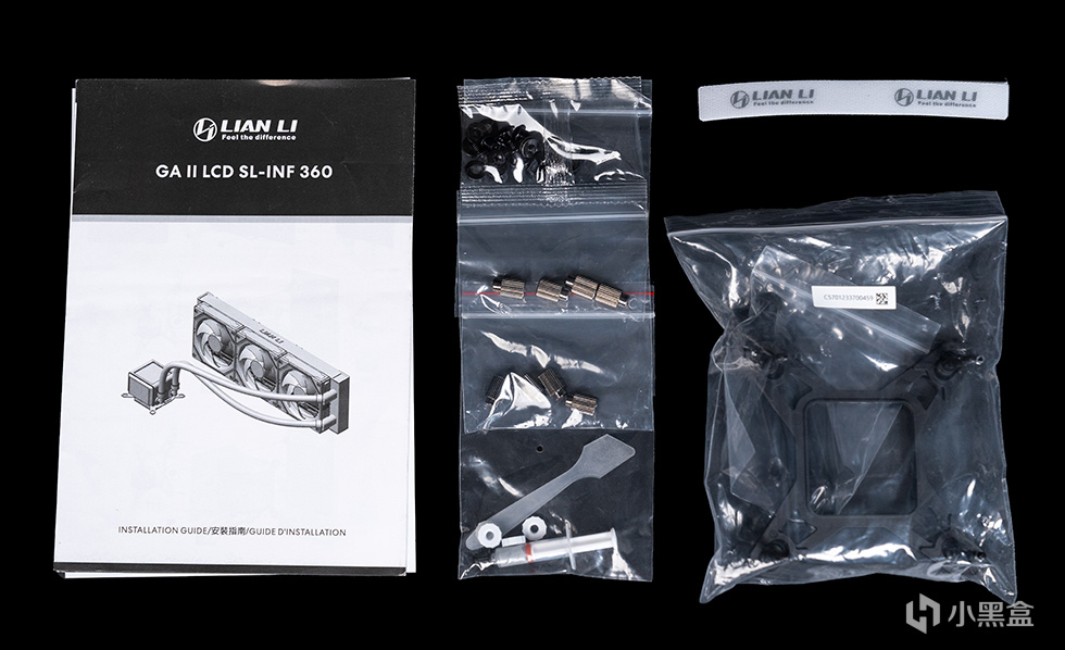 配件方面,包含了INTEL和AMD 的全平臺扣具,支持最新的1700和AM5、L-Connect 3集線器、3根5V ARGB 轉3pin線、冷頭ARGB同步線材、一罐高性能硅脂和說明書。
