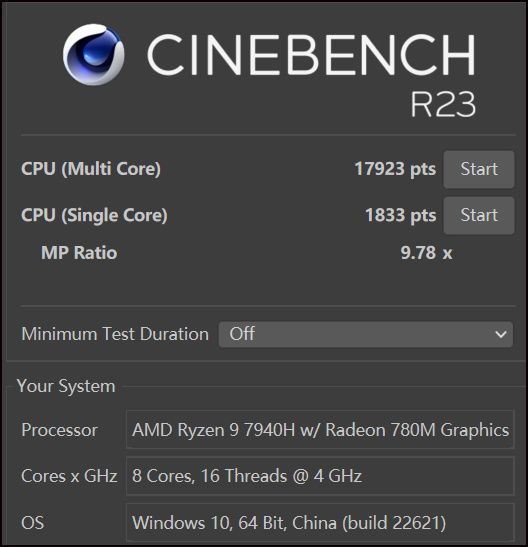 ■处理器:锐龙9 7940H(8/16,最高加速频率5.2GHz)