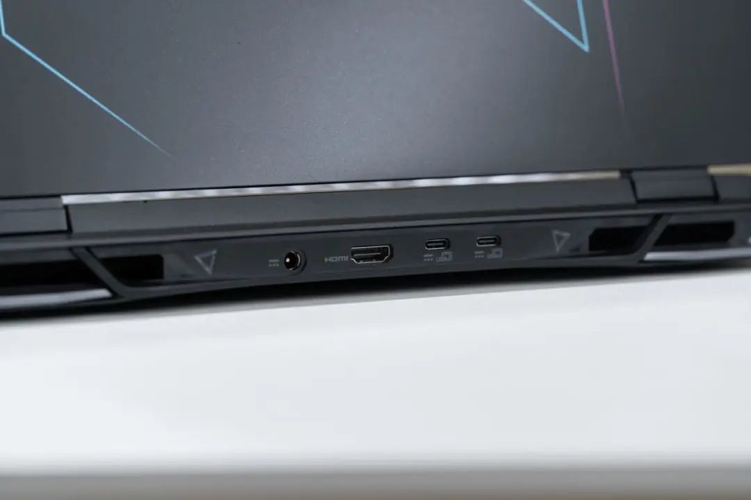 遗憾也是有的,但也存在一些可以解决的措施。两个USB-C口在尾部使用时稍显麻烦,且其中一个规格偏低,这算是一个无法避开的点,用户在传输数据时,得注意一下接口。极速模式下风扇噪声的确偏大——但实测数据已经表明,该机用性能模式即可,性能基本无影响,而此模式下,风扇噪声就与其他游戏本在同一个水平了。