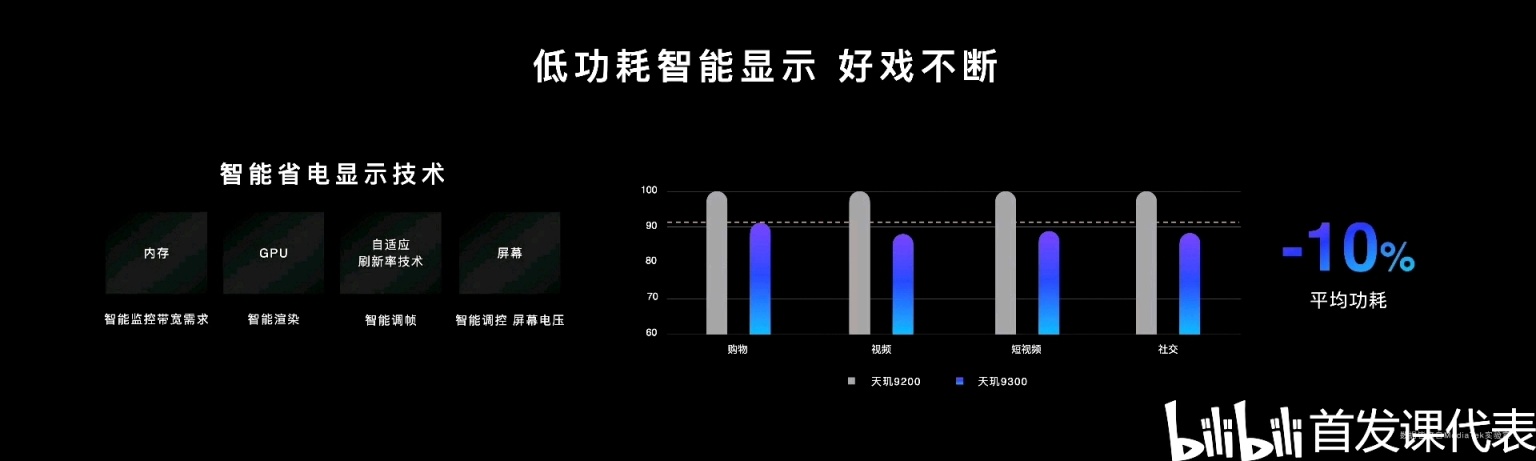 ——支持刷新率高達 180Hz 的 WQHD 屏幕或 120Hz 的 4K 屏幕,以及可摺疊設備的雙主動顯示屏,以及 Android 14 的 Ultra HDR 顯示格式,支持智能省電技術,相比 9200 平均功耗降低 10% 。