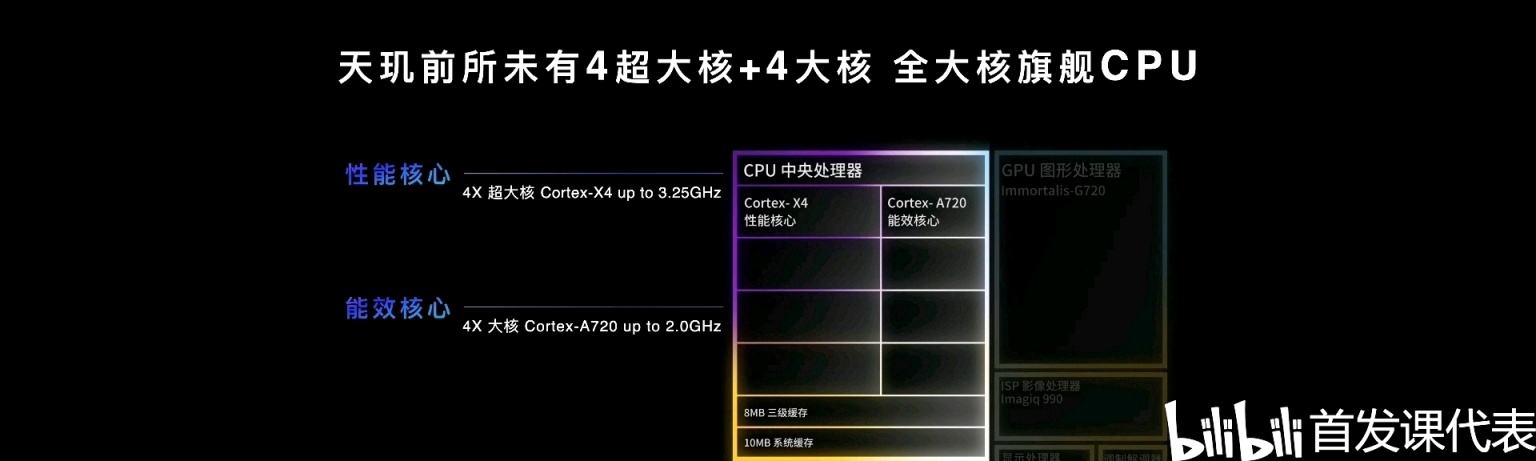 ◆ CPU:1× 3.25GHz Cortex-X4 + 3× 2.85GHz Cortex-X4 + 4× 2.0GHz A720;