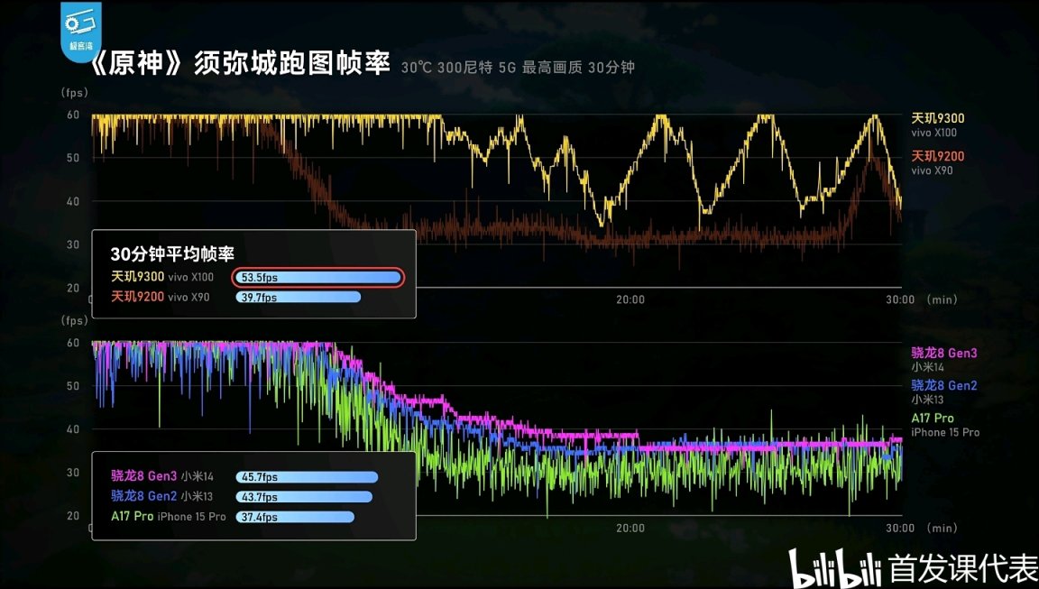 ◆ 天璣9300,與該項目中平均功耗僅2.3瓦,持平驍龍8Gen3;