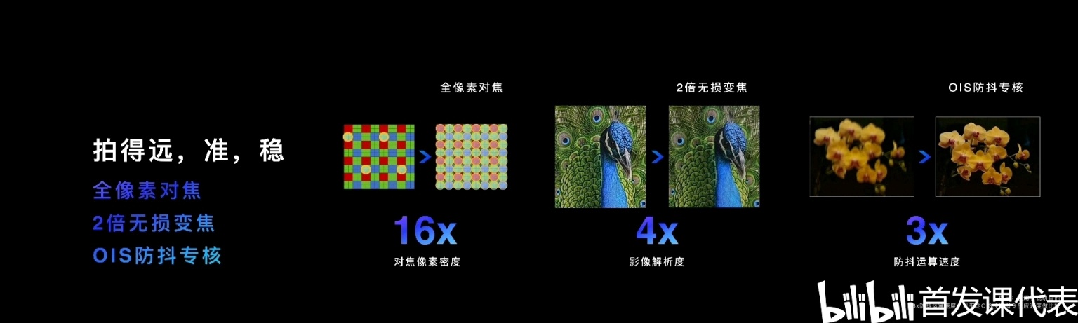 ——支持 AI 語意分割視頻引擎、16 層圖像語意分割、景深和光斑雙引擎、全像素對焦疊加 2 倍無損變焦、OIS 光學防抖專核、3 麥克風高動態錄音降噪,可過濾 25km/h 風速的 99% 以上風噪。