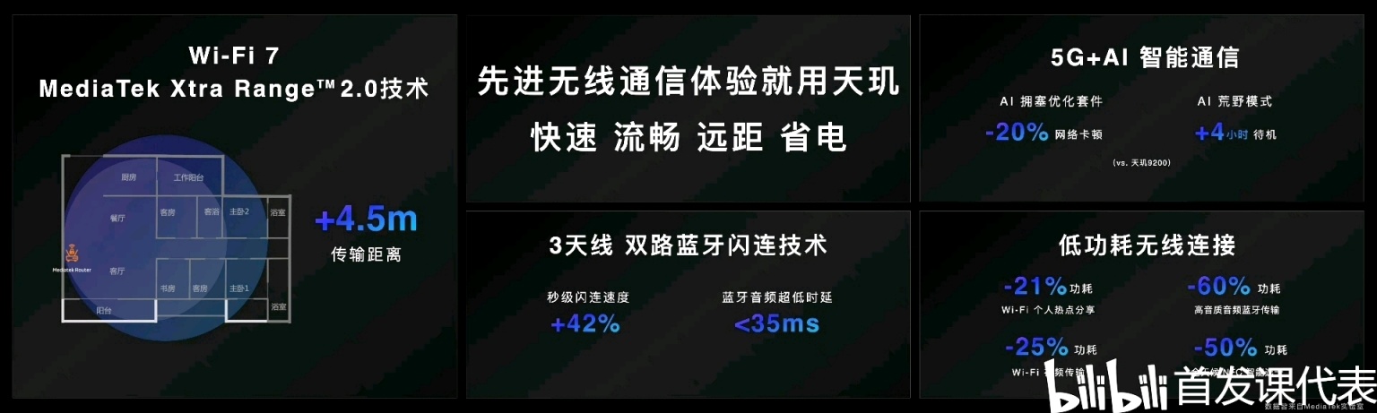 ◆ 網絡通訊:支持 Wi-Fi 7 和 5G sub-6GHz 頻段,下行鏈路速率高達 7Gbps。支持 3 個藍牙天線、特有雙路藍牙閃連技術,帶來超低時延的藍牙音頻體驗。