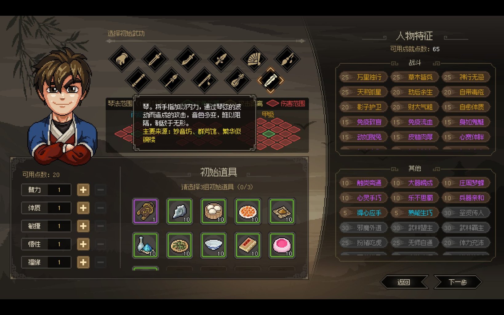 不得不说,游戏的自由度是拉满的,不论是个人养成还是江湖历练皆凭玩家自身定夺。正如开局的天赋选择、属性加点等通过搭配选择基本上就是在初期就规划好了后续发展路线,在此之上进而决定自己的拿手武器,以此拜入合适门派习得相应武功,开始自己的江湖之旅。