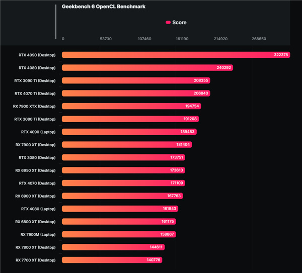 OpenCL跑分为158867,这就很弱了,还不如移动版RTX 4080,只相当于桌面RX 6800 XT。