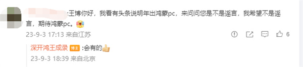值得一提的是,被大家称为“鸿蒙之父”,深圳开鸿数字产业发展有限公司CEO王成录也在今年9月回复网友评论时确认“明年会有鸿蒙PC”。