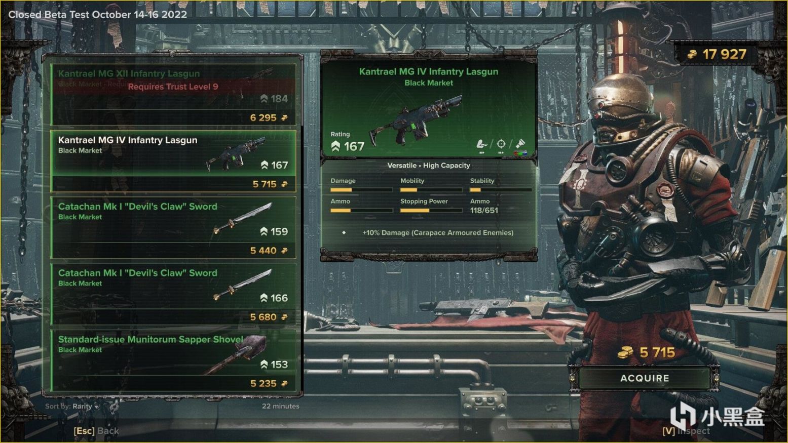 相较于前作《战锤:末世鼠疫》(下称“末世鼠疫”)系列,暗潮由于是基于战锤40K的世界观,所以武器也不再是末世鼠疫系列中的剑、弩、转轮机枪、法杖等充满了“复古气息”的武器,取而代之的是链锯剑、激光枪等战锤40K特色武器。暗潮在保留末世鼠疫系列优秀的近战设计的同时也提升了远程武器在游戏中的占比,以达到将近战和远程都呈现给玩家的全新体验,从目前的游玩体验来看,这点确实是做到了,但是其中有些枪械的手感还确实有待打磨。