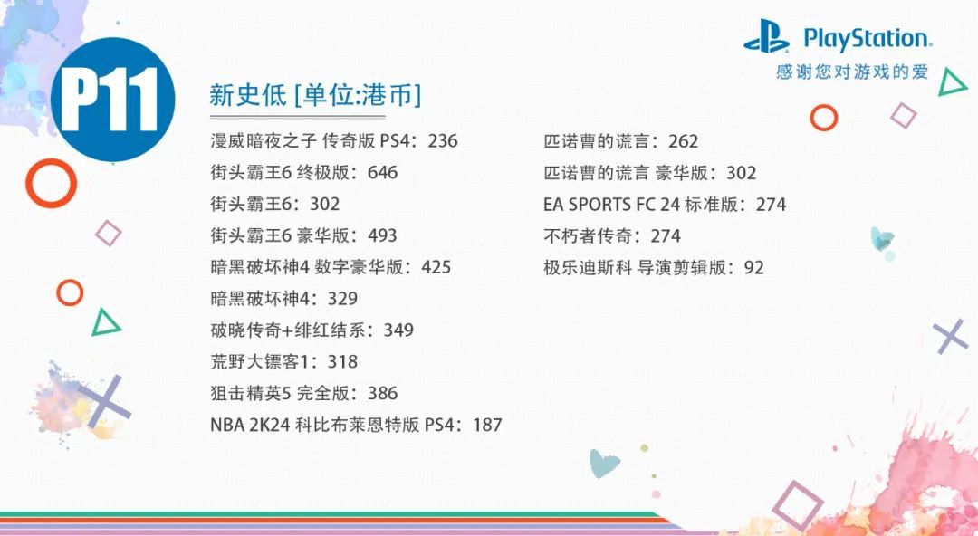 《EA SPORTS FC 24》,新史低,274港幣。FIFA系列改名後發售的第一部作品。足球年貨,做的好的僅此一家,沒什麼好多說的。這次新史低價格,不要錯過了。