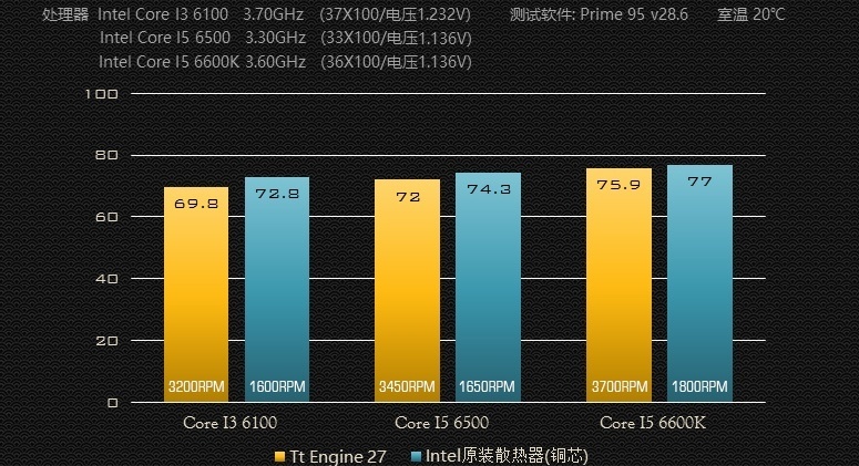 最終的成果堪堪令人滿意。在27mm的極低高度下、ENGINE 27的效能勉強超越了INTEL的原裝散熱器。不過,原本的“抗塵、低噪”等等優勢,也消失得無影無蹤了。