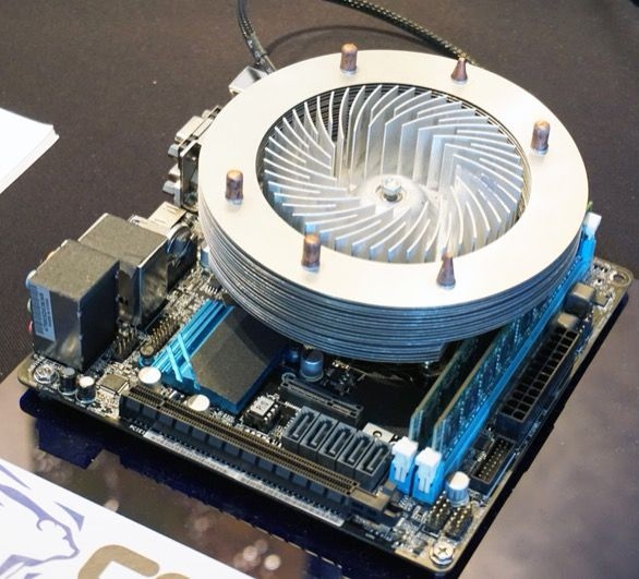這種散熱器的學名是“Sandia Labs Air Bearing Heatsink(桑迪亞實驗室 空氣軸承散熱器)”具體說來,它利用了“加速體上方的邊界層更薄”的理論,通過高速旋轉的鋁製葉輪進行散熱。
