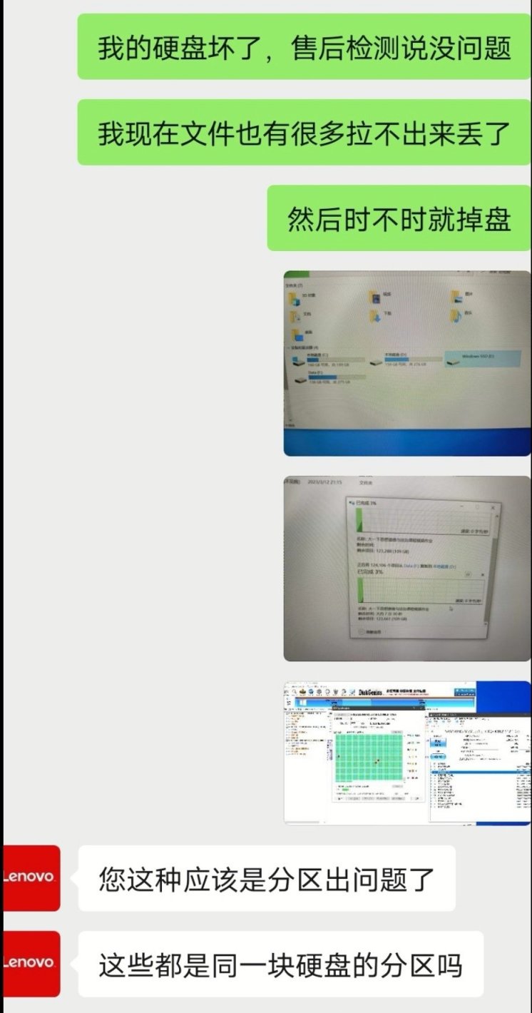 此前,非系統分區的數據尚且完好,若及時處理還能得以留存。售後所謂的“檢測”不但摧毀了更多數據,卻還只得出“硬盤沒問題”的結果。甚至還打算“收費重裝系統”,實在令人費解。