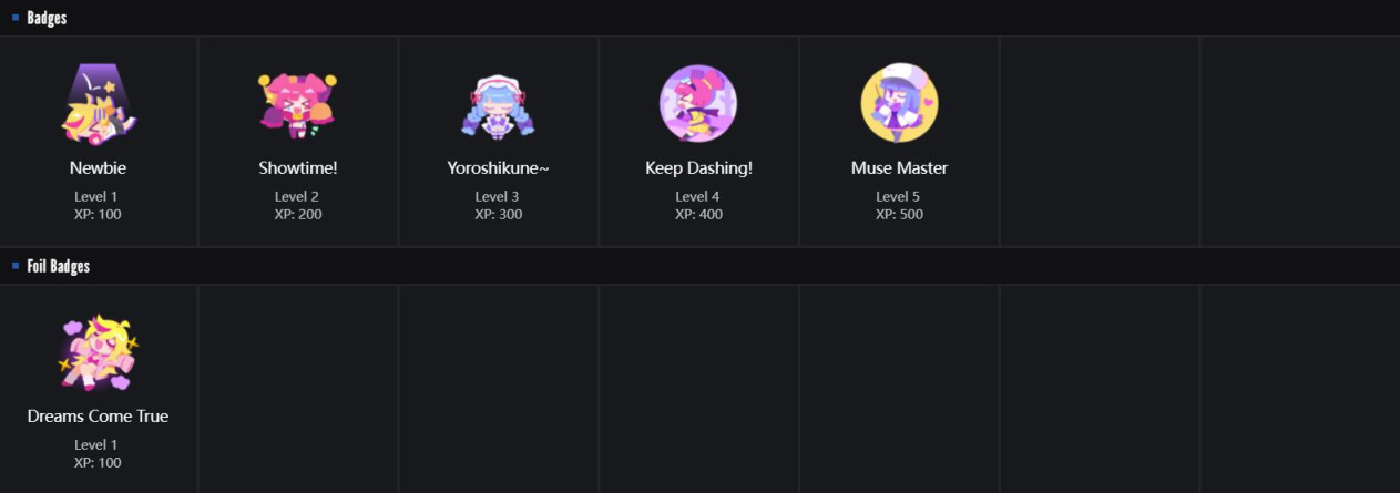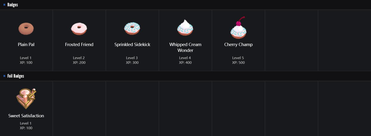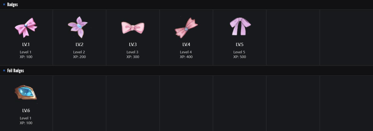 1.少见的全套都好看的徽章,每个等级都很可爱,推荐普通徽章2级,闪亮徽章: