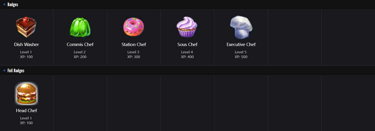 34.好喜欢关于食物的徽章!感觉都好好吃啊啊啊,推荐普通4、5级,闪亮: