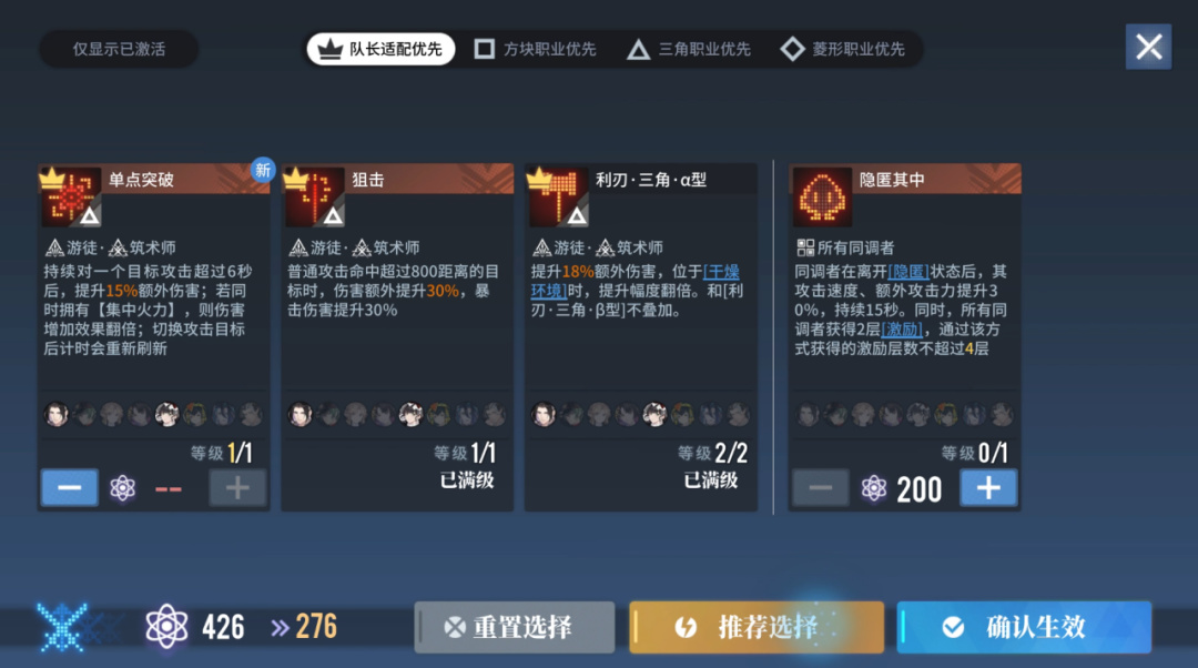 在終端加持方面,比較重要的是提供了額外的輔佐技能。也正是因爲有了這些技能,玩家在配置隊伍的時候擁有更高的自由度,不必一昧爲了應對關卡挑戰而放棄自己想要嘗試的搭配。
