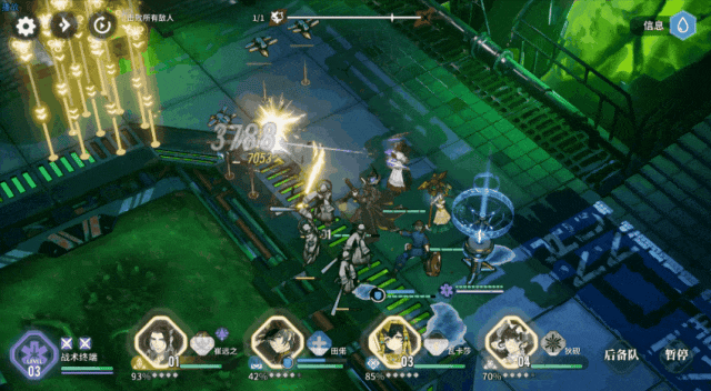 玩家可以隨時暫停遊戲進程,在發出指令的時候也會進入到時間停止的狀態,可以藉此完成更加細緻的操作,比如優先解決核心的敵人、或者用AOE覆蓋到大部分敵人,這在《白荊迴廊》中都很常見。
