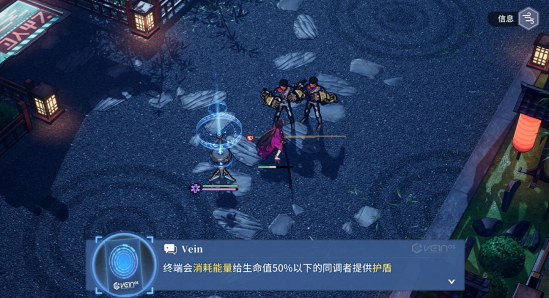 比如終端技能可以擊落飛行單位,讓不是遠程攻擊的角色也能發揮作用;也可以朝一個方向架起屏障,在缺少防衛角色的時候也可以臨時應對敵人的遠程攻擊。另外當角色生命值降到50%以下的時候,終端還會消耗能量爲該角色提供護盾值,這也爲玩家提供了嘗試和容錯空間。
