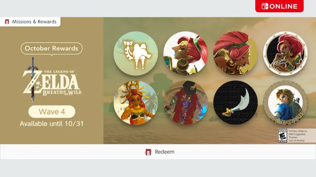 任天堂会员可兑换素材,《塞尔达传说 旷野之息》第四期,现可兑换。