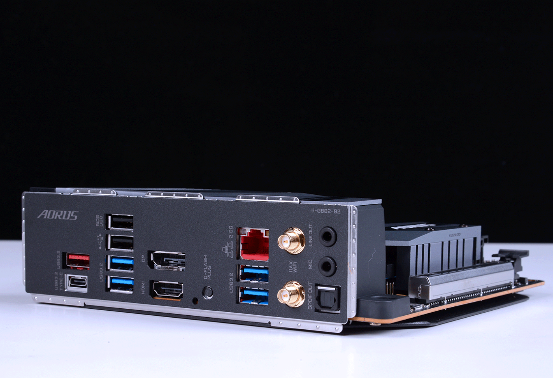 用料已經如此豪華的情況下,一體式擋板似乎也在意料之中,同時還配備了豐富的USB拓展接口。包含HDMI *1+DP X 1、USB Type - C (10 Gb/s ) *1、USB Type - A (10 Gb/s ) *1、USB 3.2 Gen1 * 4 ( 5 Gb/s )、USB 2.0 * 2 、2.5G RJ-45 有線頻插孔以及 支持WiFi6的SMA天線接口(2T2R)…此外,Q-Flash Plus功能在技嘉迷你雕B660I主板上也有搭載,讓用戶可以在不安裝CPU、內存的情況下刷新BIOS,不需要備件就能自由刷新BIOS,是個非常實用的功能。
