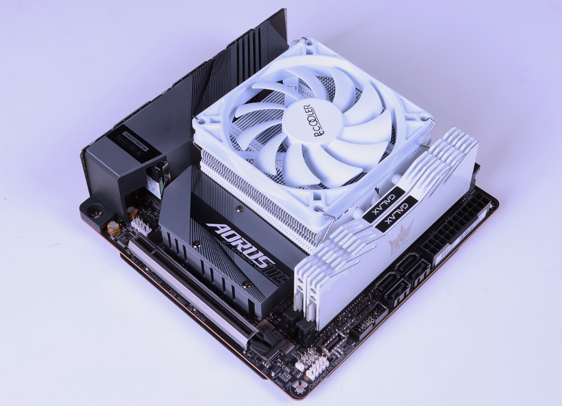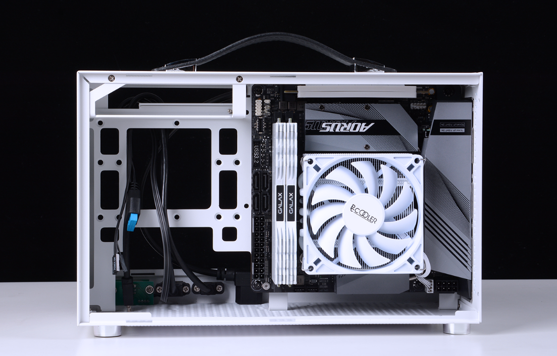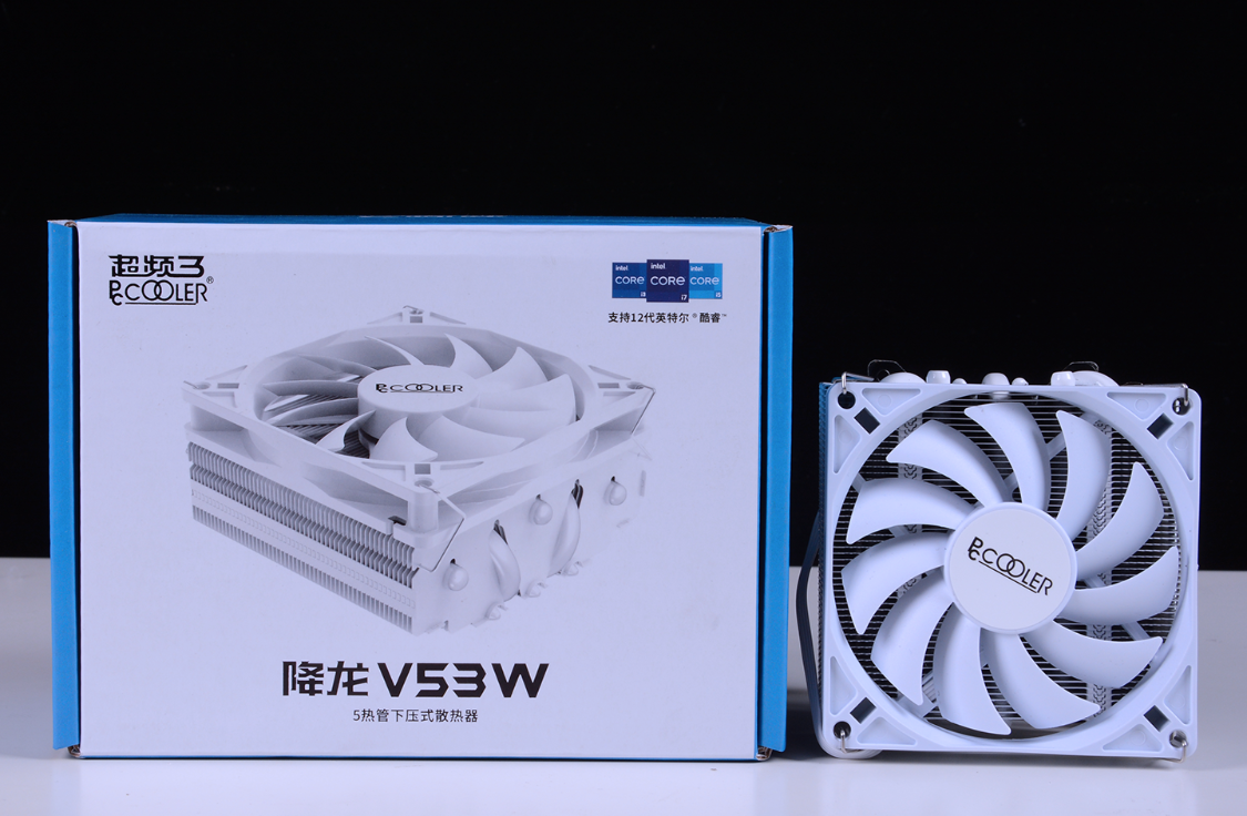 機箱風冷散熱限高60mm,基本只能選擇下壓式的風冷散熱,結合12400處理器的散熱需求,選定了這款超頻三降龍V53W 白色下壓式風冷。