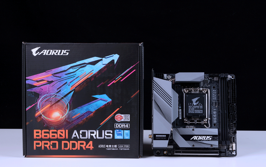 想着上限跟性價比高點,其實B660級別主板跟12代i5更適配,但那麼多B660,咋選?好在這次裝機只能用ITX主板,而目前在售的B660I主板,真的沒幾個。DDR5首先被排除,小廠不敢買,所以可以盲選的只有一款,那就是技嘉迷你雕B660I AORUS PRO DDR4主板。不得不說,技嘉主板這包裝風格辨識度真的超高,電競風+科技感直接拉滿;