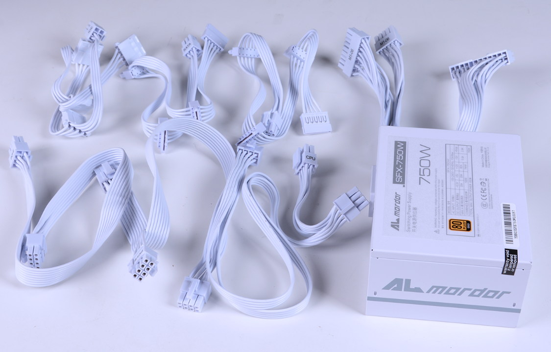 電源三圍125mm*100mm*63.5mm,專爲ITX機箱設計,白色全模組扁線,高顏值同時也方便走線;