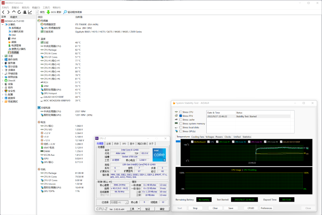 室溫26℃,機箱內環境,單烤FPU,15Min,CPU的功耗爲81W,溫度穩定在82℃。對於ITX主機來講,這樣的表現應該說非常優秀。