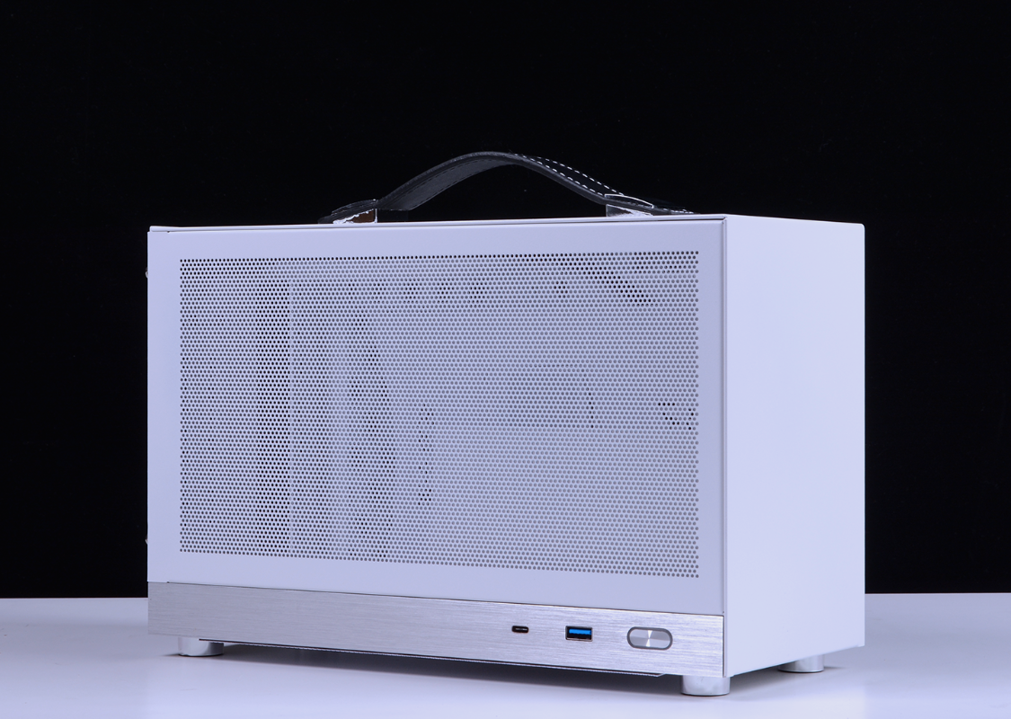 機箱頂部有皮質提手設計(官方理論承重可達20KG),整機提着走真不是難事兒;